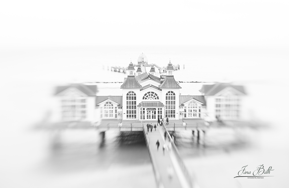 Durch den Effekt des Lensbaby Sweet 50 sehen xmal fotografierte Motive ganz anders aus und selbst ich war überrascht, was das Objektiv mit der Seebrücke in Sellin 'veranstaltet' hat. Die reichlich oft fotografierte Seebrücke habe ich nun sehr minimalistisch dargestellt, auch wenn das aufgrund der recht pompösen Bauweise kaum möglich ist. Auch der graue und trübe Tag unterstreicht die Wirkung und reduziert das Bild auf seine wesentliche Aussagekraft. Ich liebe es!