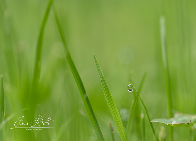 Kurz nach dem Start unser dreistündigen Fototour konnte ich noch beobachten, wie unruhig die Hände meiner Kundin waren. Je mehr sie sich in die kleine Makrozauberwelt hineingefühlt hat, umso ruhiger wurden die Hände und um so sicherer der Klick. Zum Ende des Termins konnte sie vollständig abtauchen, zwischen rauschenden Gräsern, die sich sanft im Wind wiegten und glitzernden Tropfen, die sich fast unsichtbar an den Rasen hefteten.